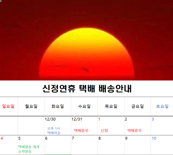 택배마감 : 12월 30일 (화요일 ) 오후1시
